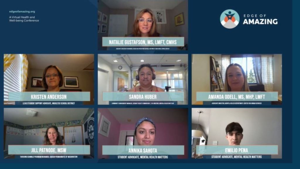 In July 2022, our MHM Youth Group Leader and Research Assistant, Annika Sahota, along with youth Peer Mental Health Navigator, Emilio Pena, participated with MHM of WA Co-Director, Sandra Huber and youth mental health experts in a virtual community workshop that is featured in Providence Institute’s for a Healthier Community (PIHC) upcoming Edge of Amazing virtual conference. The title of the workshop is, “Strong, Heard & Resilient: Supporting the Wellness of Young People” and features a panel that discusses ways communities can invest in the mental health of youth. To learn more about the conference and this workshop, you can go to the EoA website HERE.